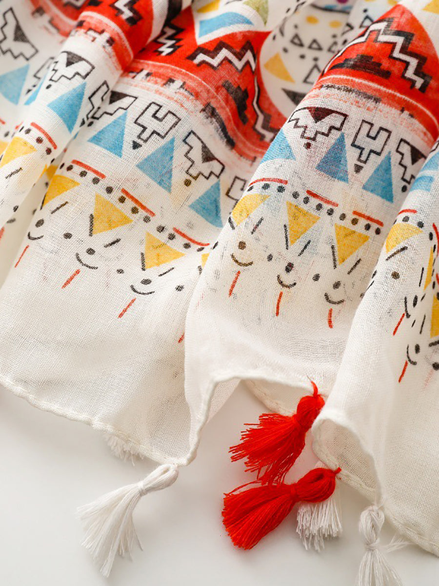 Shawl Tassel Print Bohemia Geometric Women Scarf