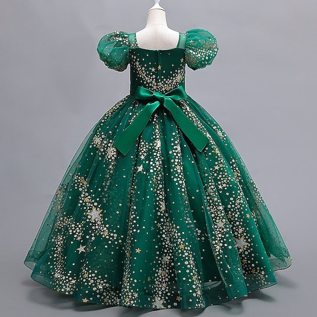Gender: Girls', Age Group: Kids, Style: Beautiful, Adorable, Fashion, Elegant, Princess, Occasion: Special Occasion, Birthday, Wedding, Pegeant, Kids Apparel: Dress, Party Dress, Fabric: Mesh, Polyester, Pattern: Flower, Polka Dot, Star, Sleeve Length: Short Sleeve, Design: Mesh, Puff Sleeve, Age: 4-13 Years, Season: Winter, Fall, Look After Me: Hand wash, Elasticity: Micro-elastic, Dresses Type: Tulle Dress, Party Dress, Floral Embroidery Dress, Swing Dress, Fit Type: Regular Fit, Dress Length (cm): Maxi, SizeChart1_ID: 2:184806, Neckline: V Neck,