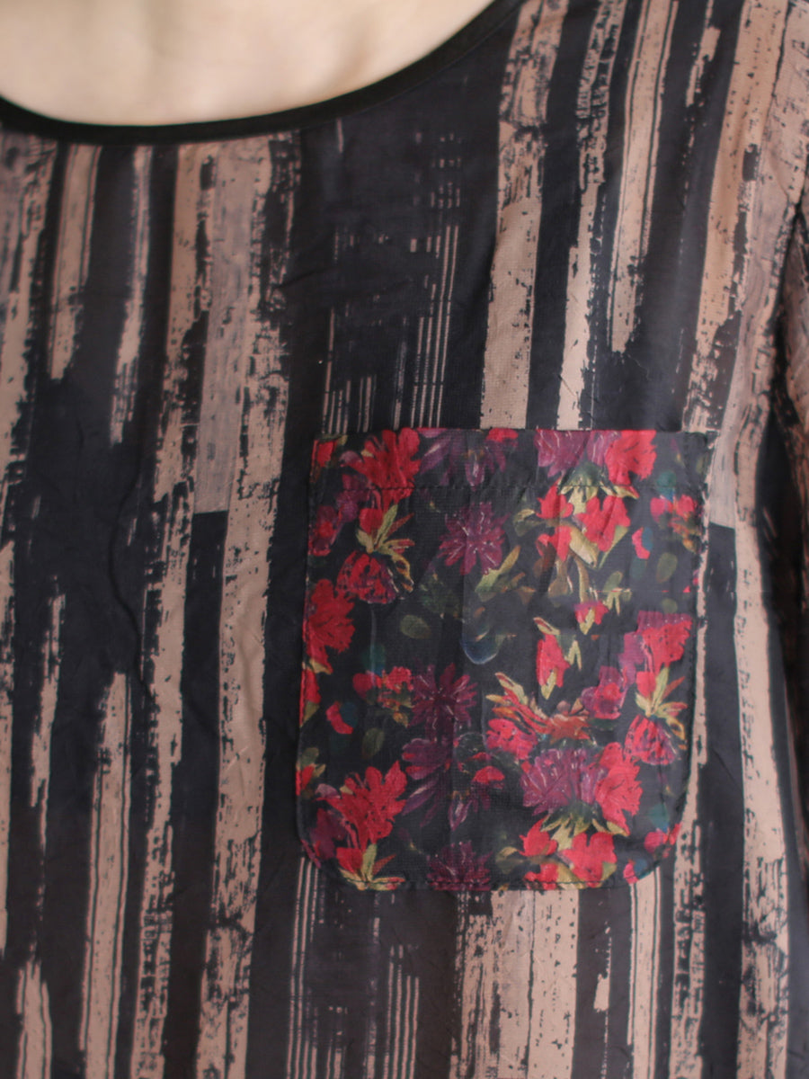 This coordinated set features a short-sleeved O-neck shirt paired with elastic-waist wide-leg pants. crafted from a luxurious 85% silk/15% polyester blend. The vintage-inspired striped pattern creates a sophisticated aesthetic. while the regular sleeve design ensures comfort. Ideal for spring and summer wear. this ensemble combines breathable fabric with a relaxed silhouette for effortless elegance.