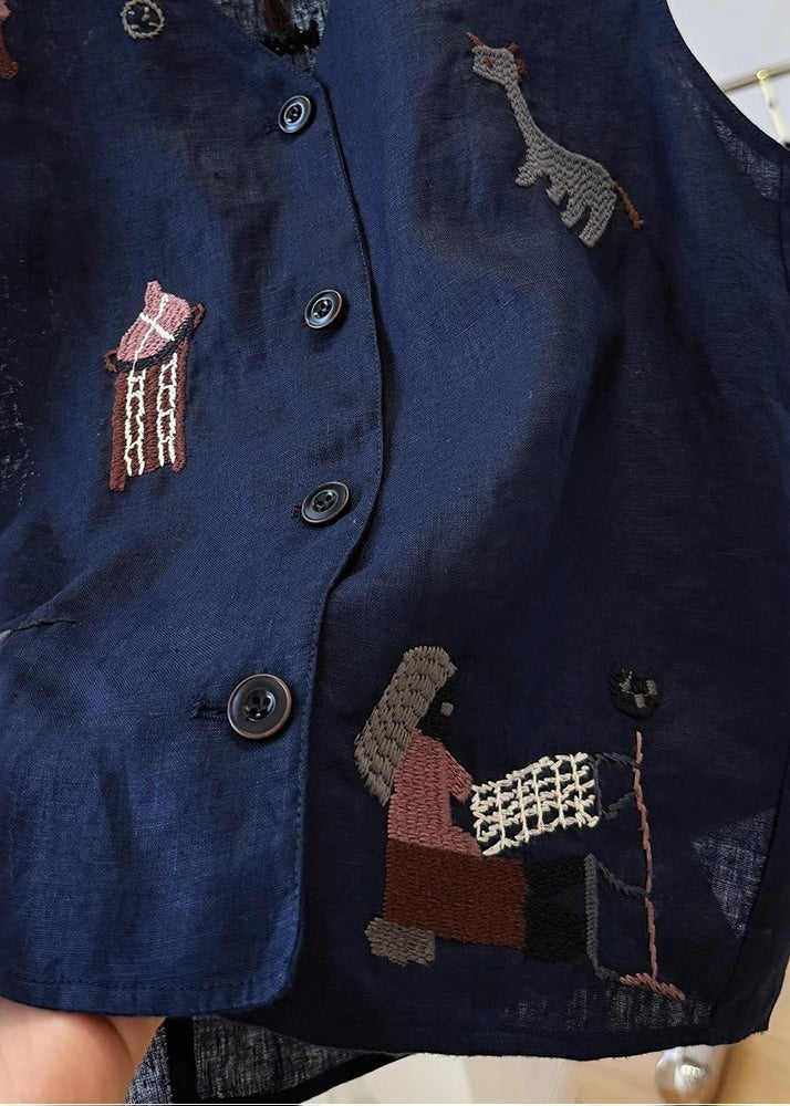 White Vest Sleeveless Embroideried Neck Cotton V Women