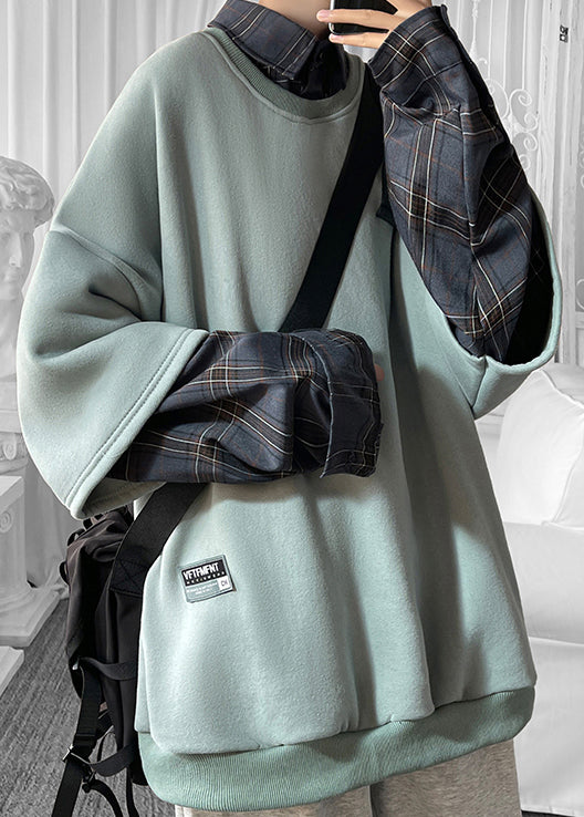 Cool Khaki Mens Collar Cotton Pan Plaid Patchwork Peter