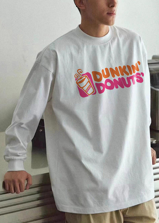 Cotton Letter Neck Shirt Half Sleeve Loose Rose O Men T