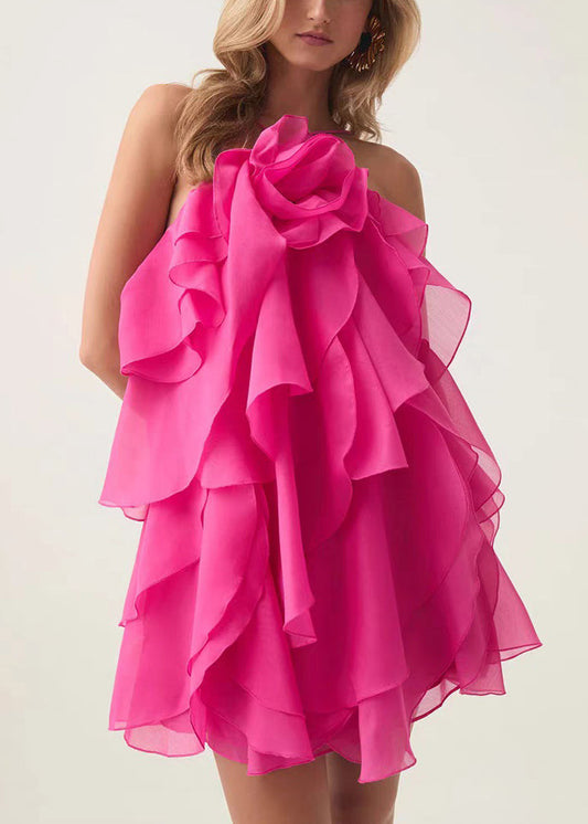 Cotton Rose Solid Summer Mini Floral Dresses Backless