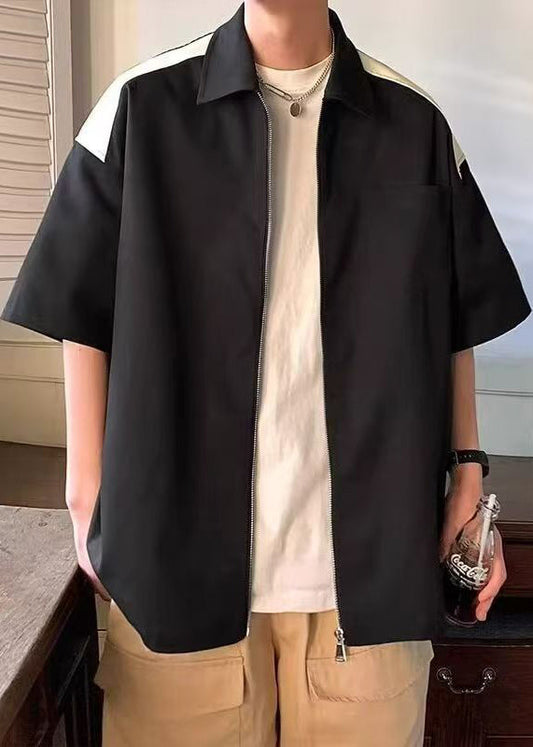 Cotton White New Mens Half Pockets Patchwork Zippered Shirts