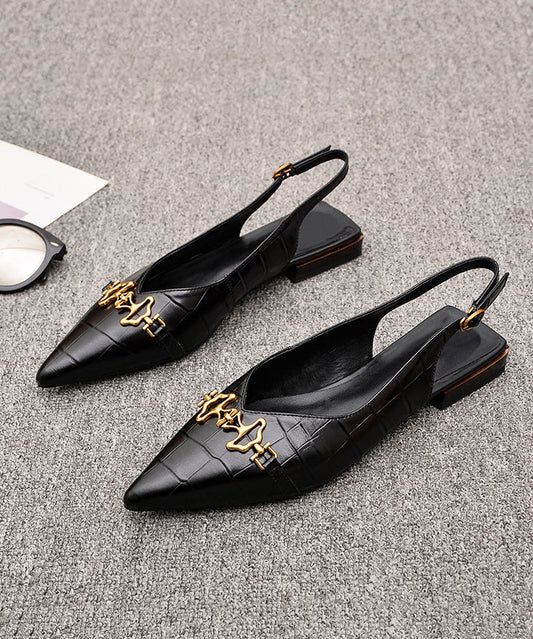 Black Fashion Cowhide Sandals Leather Splicing Sequined Pointed
