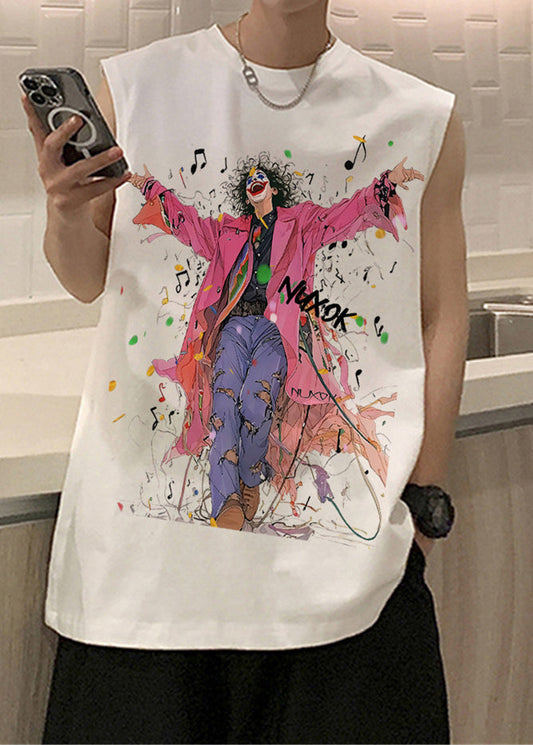Black French O-Neck Sleeveless Mens Print Tanks Cotton