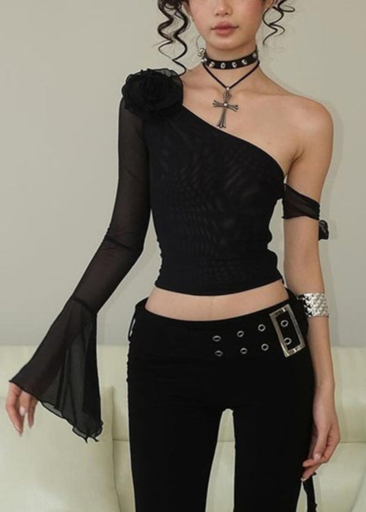 Sexy schwarzes ärmelloses Tüllkleid mit Rüschen und Schnürung EE1042