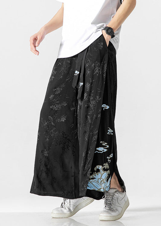 Chinesischen Stil Schwarz Taschen Jacquard Ice Silk Männer Hosen Sommer YT052