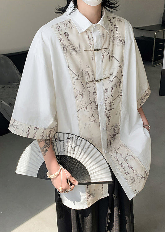 Französisches schwarzes Knopf-Druck-Patchwork-Baumwollhemd für Herren im Sommer YT080