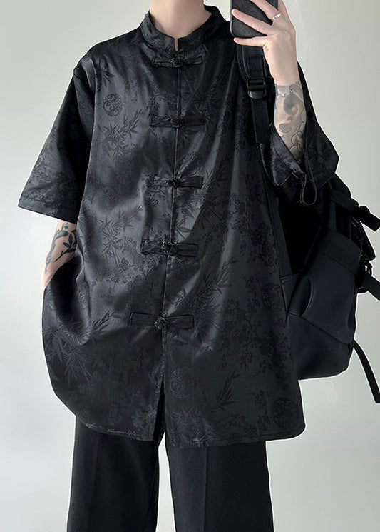 Chinesischen Stil Schwarz Taste Taschen Ice Silk Männer Hemd Sommer YT090