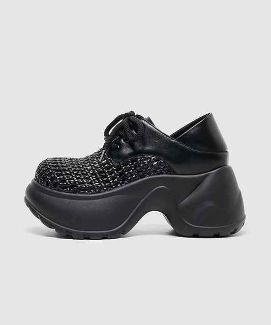 Fashion Black Mesh Zircon Breathable Splicing Chunky Shoes