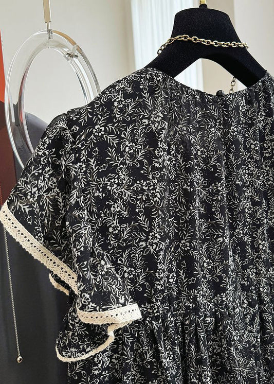 Tanks Chiffon Print Black Butterfly Stylish Sleeve