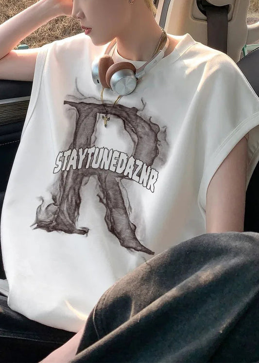 Men's French Print Oversized Sleeveless Cotton Tanks White
