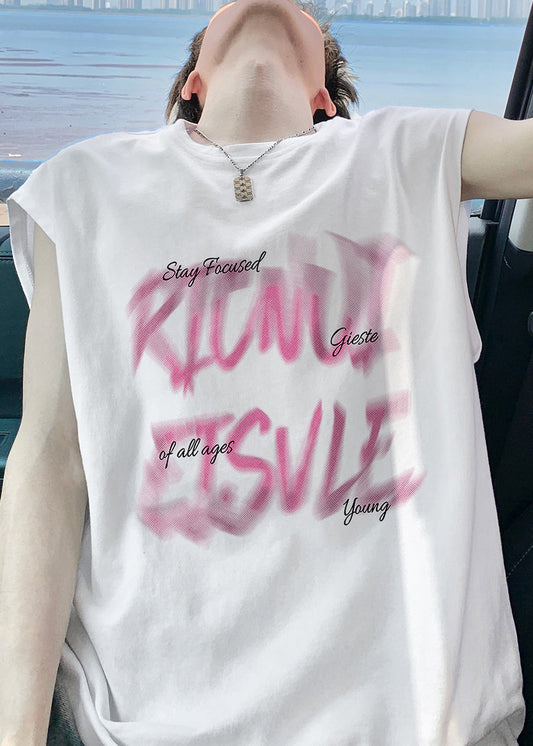 Print Tank Apricot Letter Men Sleeveless Cotton Oversized New