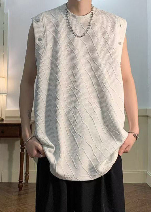 O Neck Cotton Shirts Sleeveless Men Solid Simple Black T