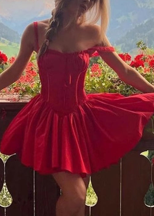 New Red Bow Tank And Pleated Skirt Cotton Two Pieces Set Sleeveless YZ043