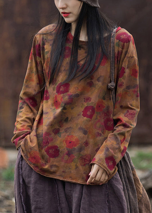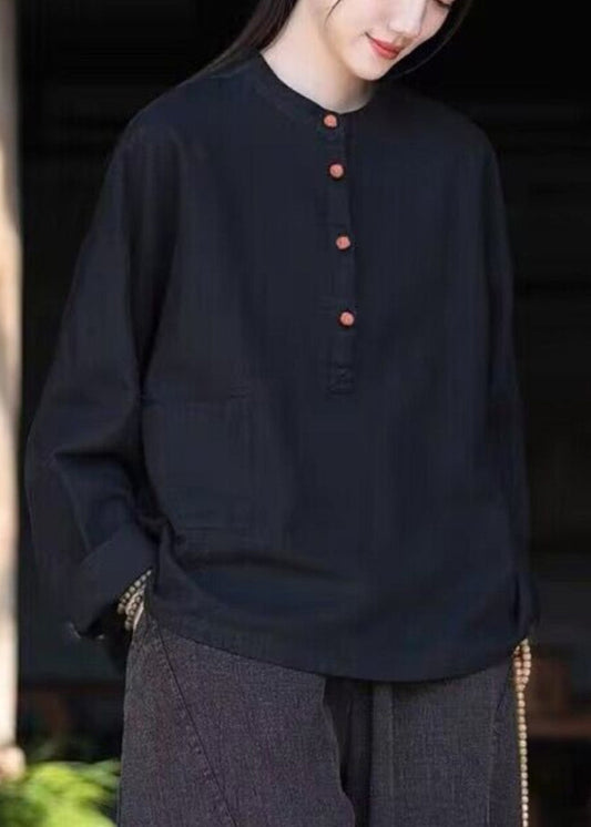 Vintage O-Ausschnitt Besticktes Leinenhemd Top Langarm LK008