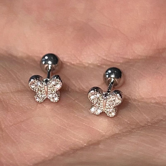 Earring Rhinestone Barbell Sterling Butterfly Silver