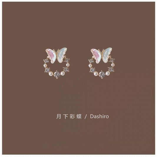 Faux Rhinestone Stud Alloy Butterfly Pearl Earring