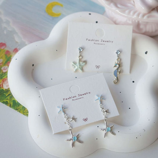 Clip-On Rhinestone Earring Starfish 925 Silver / Sterling Drop