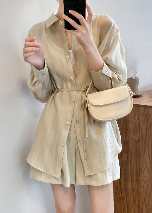 Wrinkled Dresses Beige Spring Shirt Modern Oversized Cotton