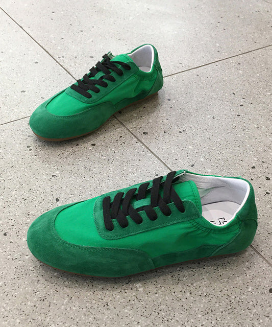 Feet Cowhide Shoes Flat Handmade Splicing Platform Leather Green