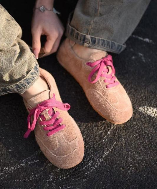 Women Splicing Flat Feet Shoes Green Suede Lace Up YC023