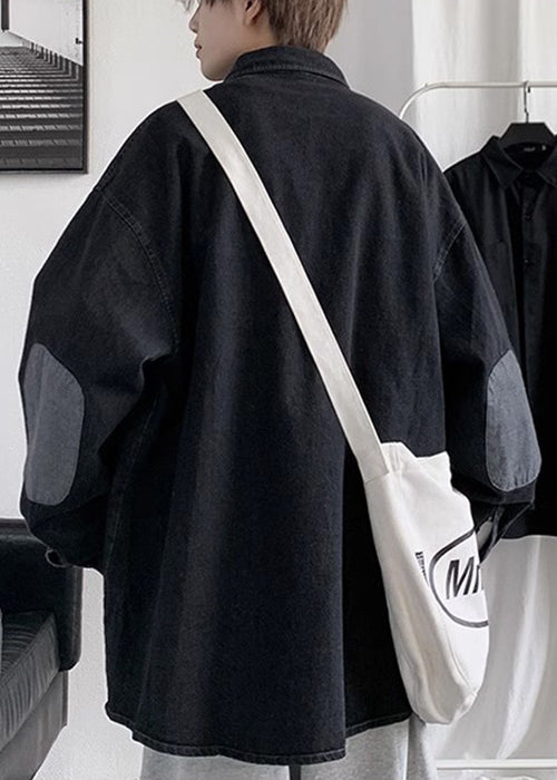 Button Pan Spring Shirts Collar Loose Men Denim Peter Black