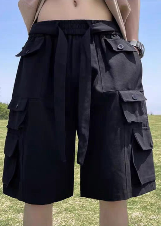 Cotton Shorts Waist Summer Vintage Pockets Brown Mens Elastic