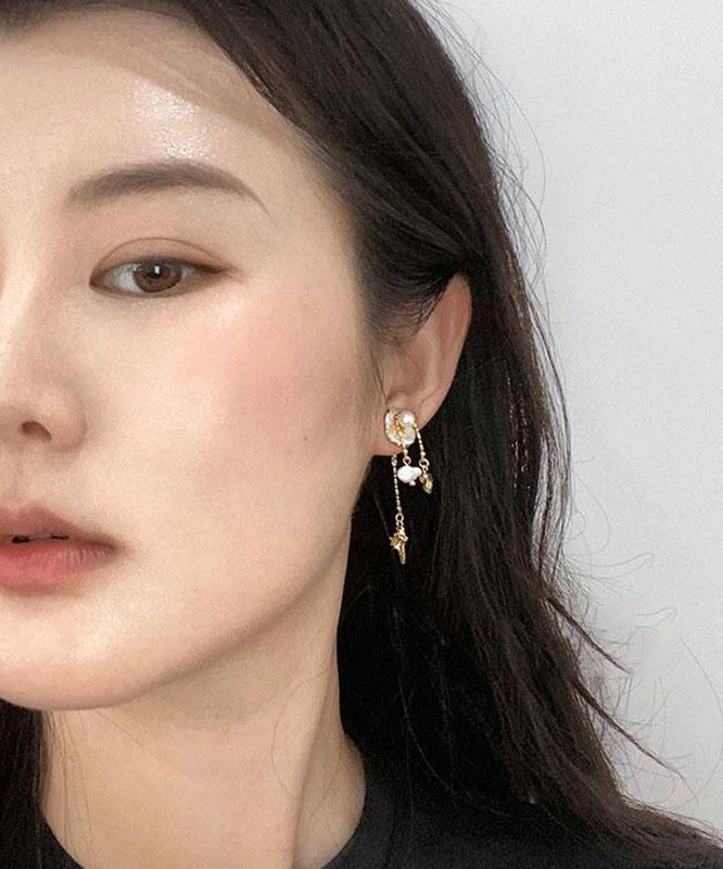 Original Design Gold Copper Alloy Conch Pearl Tassel Drop Earrings