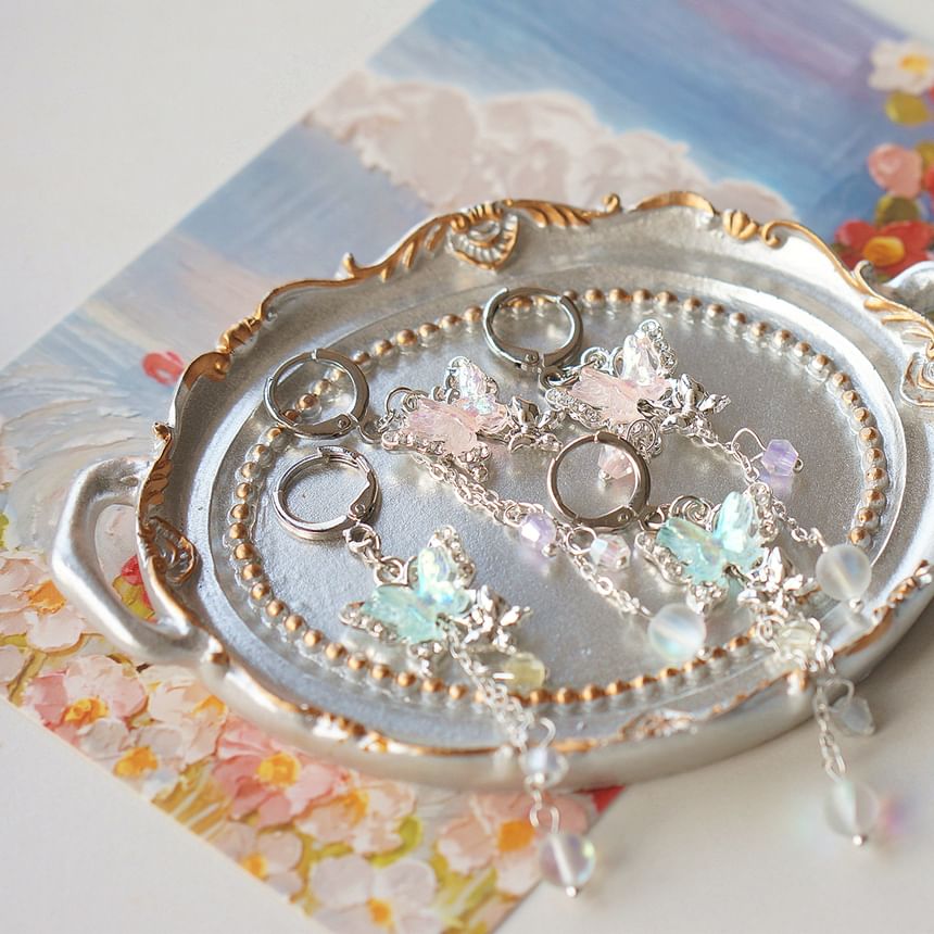 Earring Clip-On Sterling 925 Butterfly Drop Silver Bead /