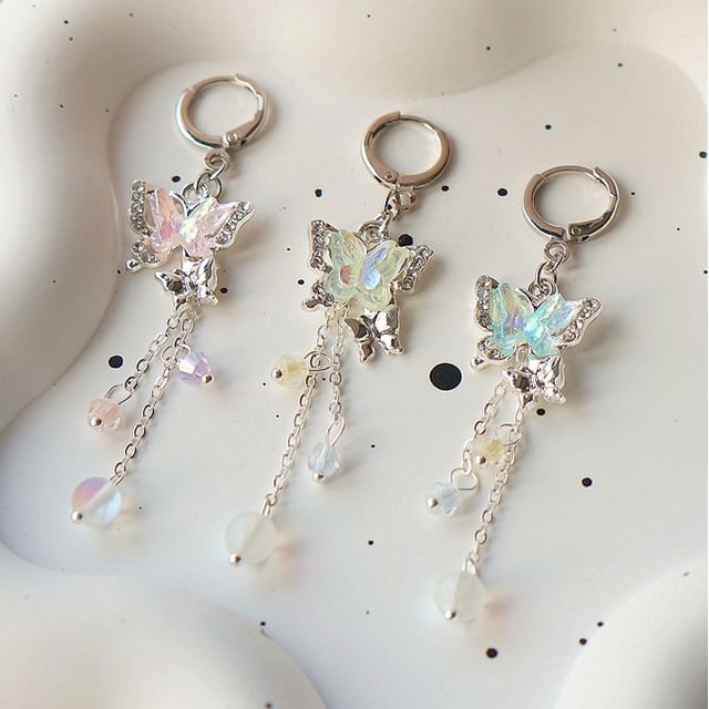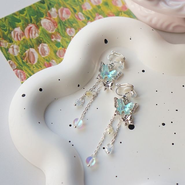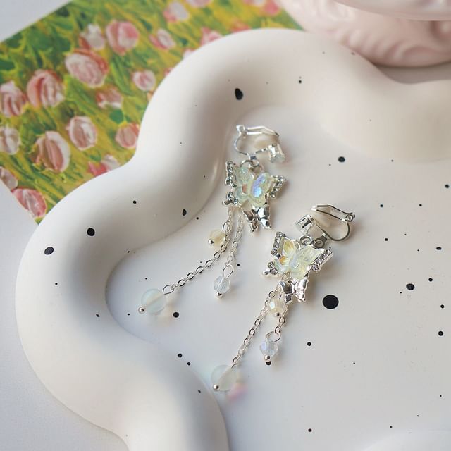 925 Sterling Silver Butterfly Bead Drop Earring / Clip-On Earring