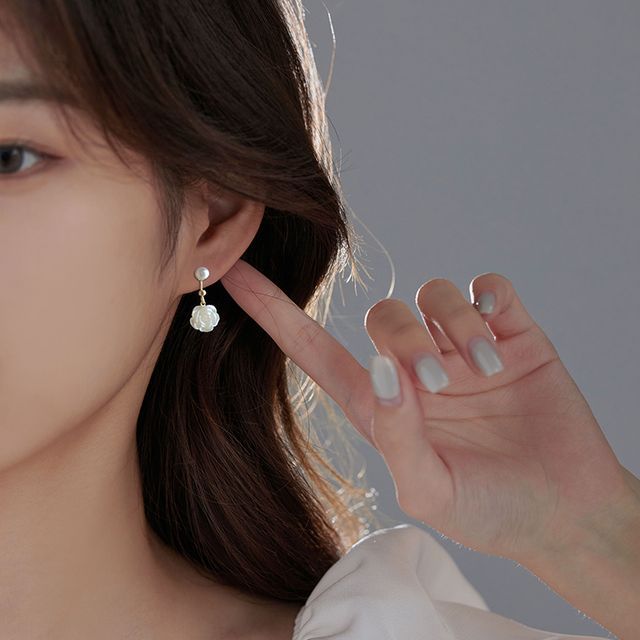 Earring Silver Dangle Floral Sterling