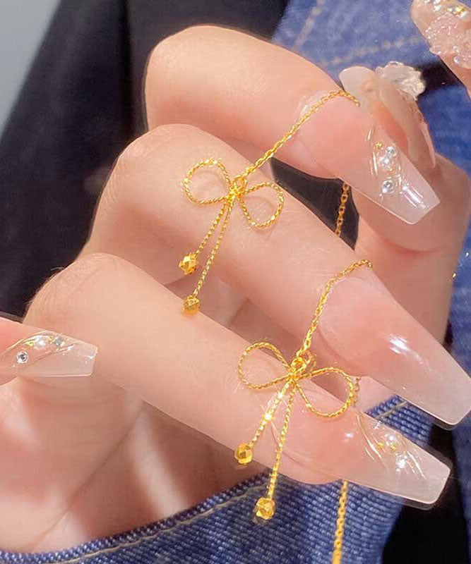 Stylish Gold Sterling Silver Overgild Bow Drop Earrings