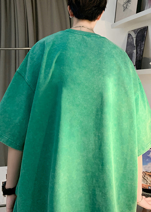 Green Letter Print Cotton Graphic Tees Men O Neck Short Sleeve YL008