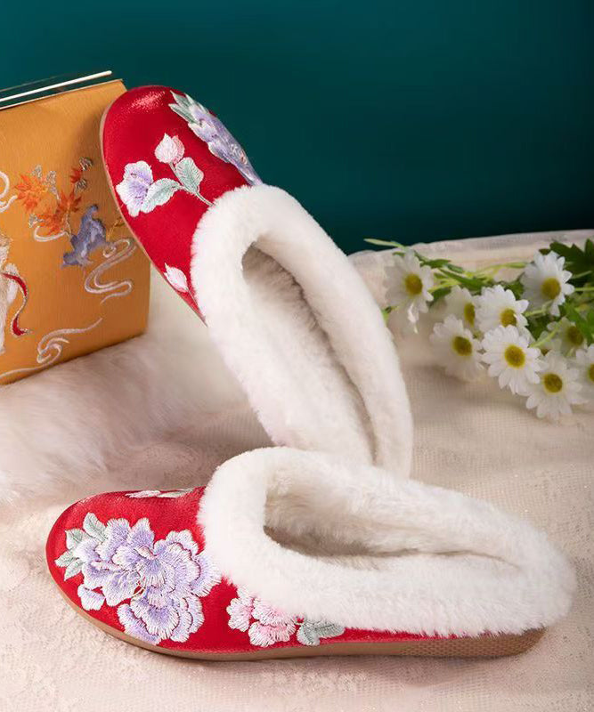 Experience the luxurious comfort of our handcrafted vintage slippers, lined with fuzzy wool and adorned with elegant black satin embroidery.