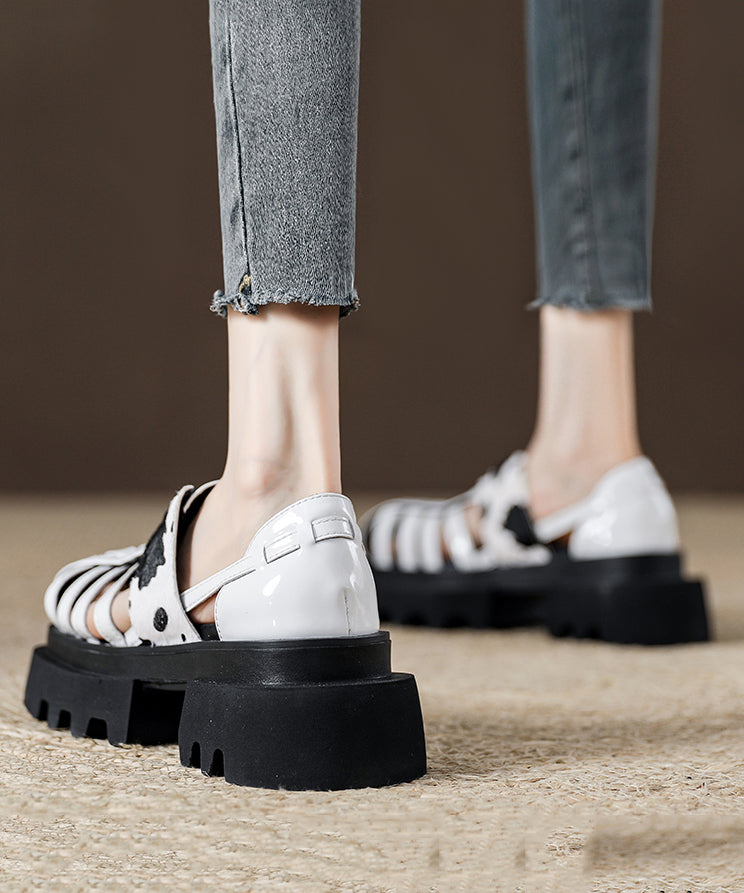 Platform Black Leopard Roman Sandals 2025 New Hollow Out Design