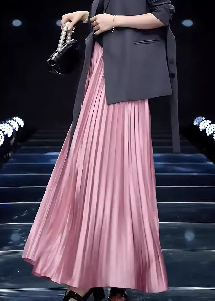 Loose Pink Wrinkled Solid Cotton Skirts Spring