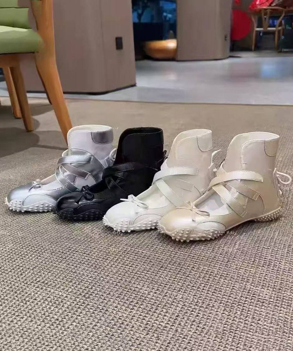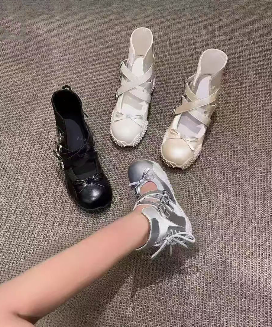 Nude Up Fashion Lace Bow Leather Shoes Faux Splicing Flats