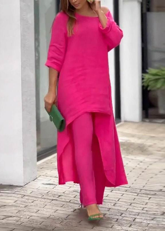 Simple Baby Blue Asymmetrical Patchwork Top And Wide Leg Pants Two Pieces Set Half Sleeve