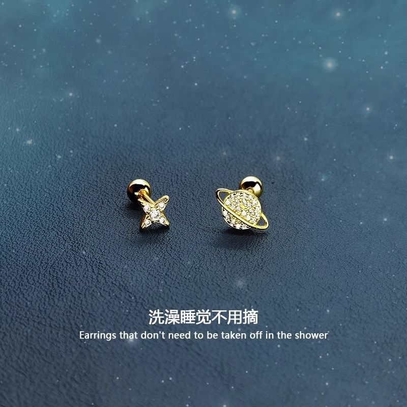 Asymmetrical Star Rhinestone Sterling Silver Barbell Earring