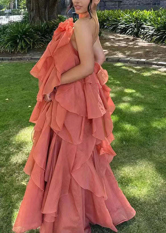 Ruffled Design Strap Chiffon Boho Asymmetrical Blue Spaghetti
