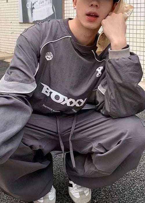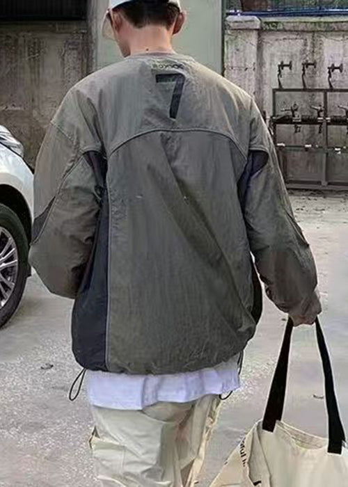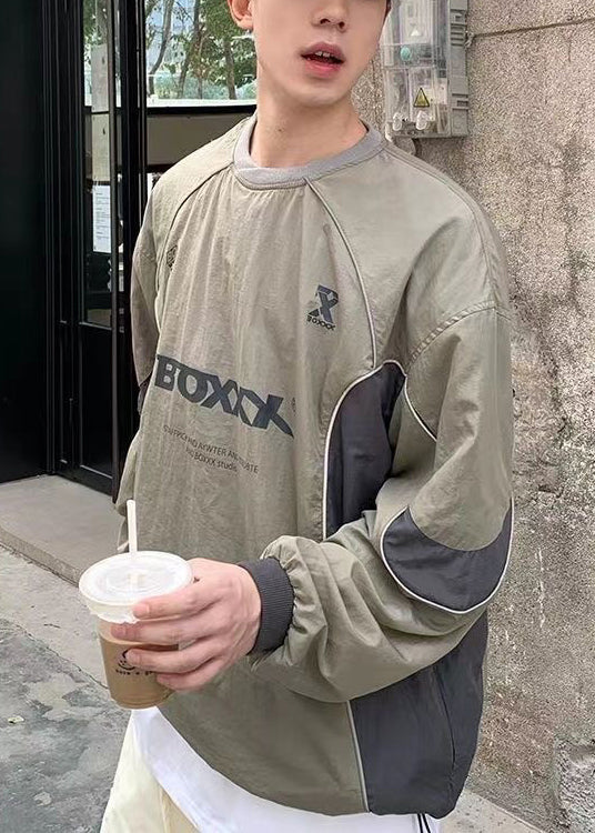 Shirt T Letter Cotton Casual Drawstring Patchwork Green Mens