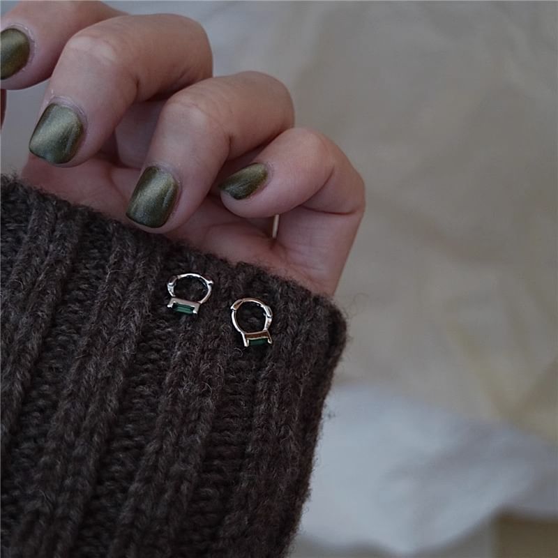 925 Sterling Silver Rhinestone Huggie Earring