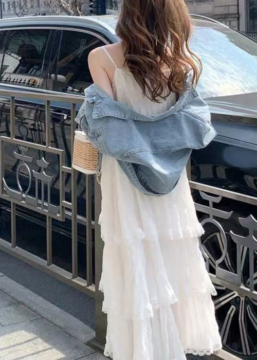 Strap V Elegant Lace Dress Neck Spaghetti Purple Cotton