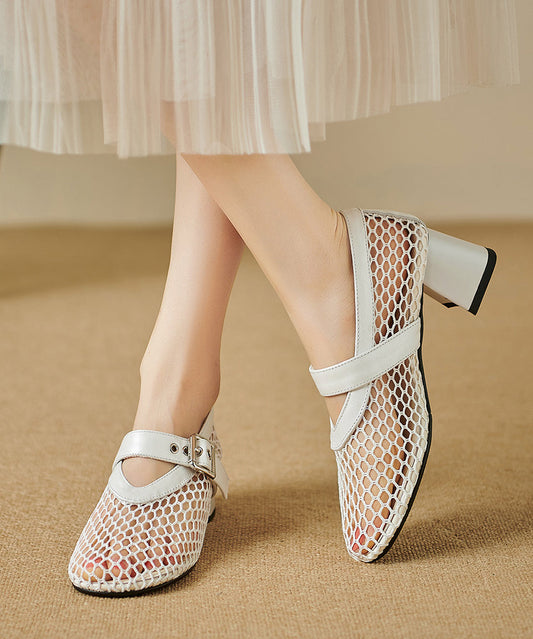 Boutique Black Cowhide Leather Splicing Chunky Boots Pointed Toe TE017