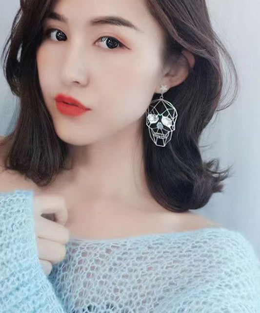Boutique Schwarz Metall Zirkon Menschliches Skelett Aushöhlen Tropfen Ohrringe ZZ016