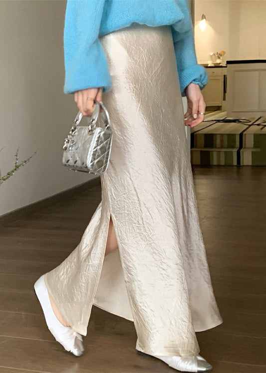 Boutique Schwarz Seitlich Offen Einfarbig Hohe Taille Seide Maxi Röcke Herbst QP060