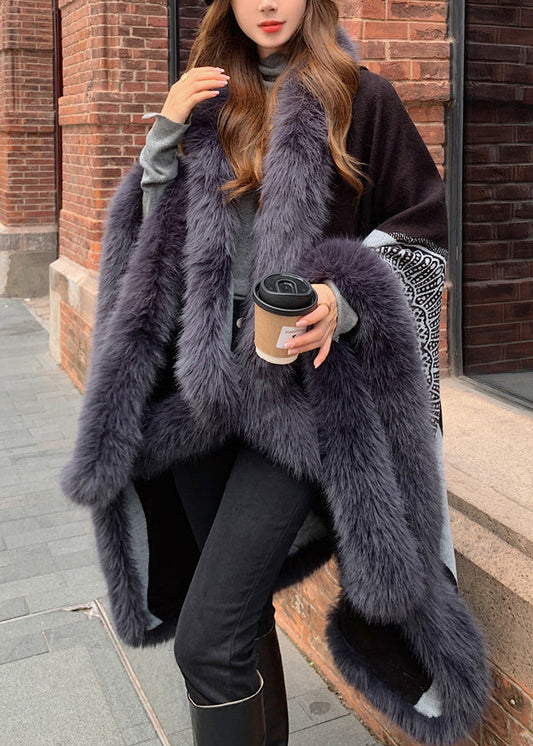 Boutique Handmade Black Hooded Patchwork Faux Fur Shawl WN007