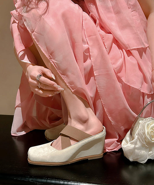 Boutique Khakifarbene Sandalen mit überkreuzten Riemen und hohem Keilabsatz DD1026